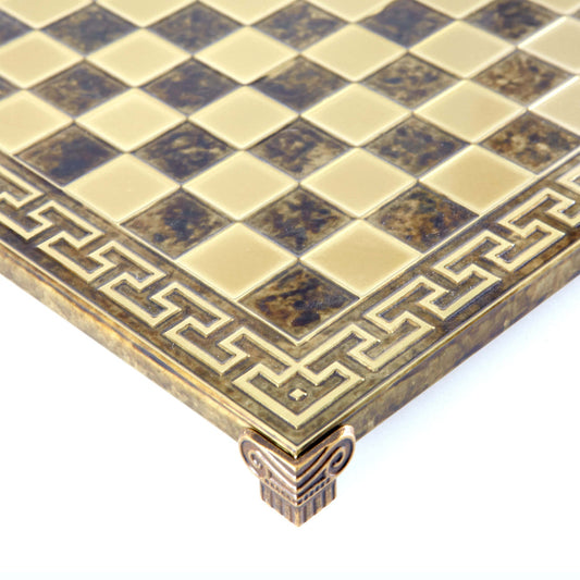 Handcrafted Greek Meander Style Brass Chess Set - 28x28cm (Small)
