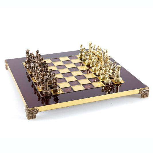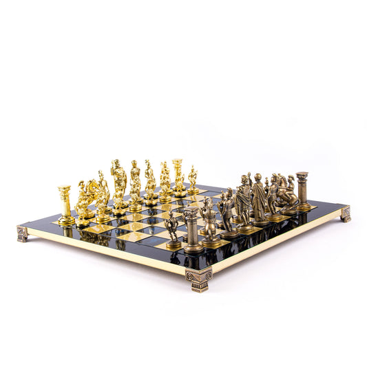 Handcrafted Greek Roman Period Chess Set - Gold & Bronze Chessmen with Bronze Board (Small)