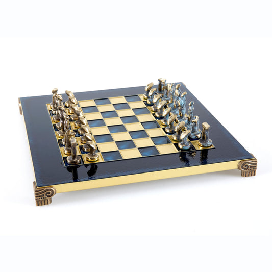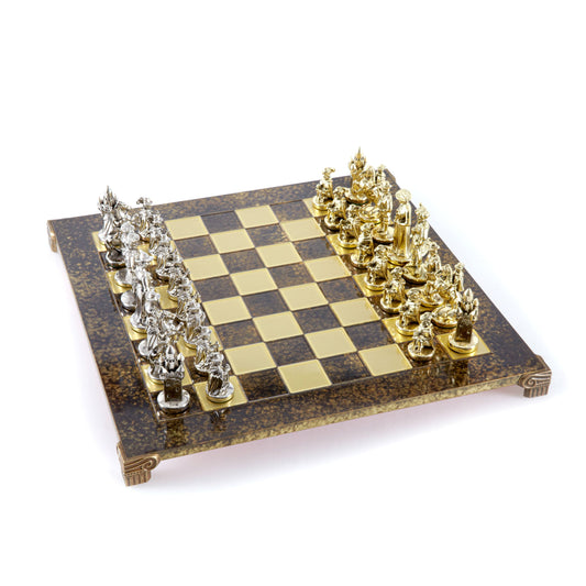 Handcrafted Spartan Warrior Chess Set - Gold/Silver Chessmen and Bronze Chessboard (Small)