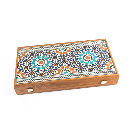 Moroccan Mosaic Art Backgammon Set - Bold and Vibrant Design