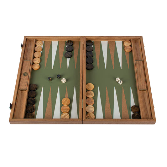 Premium Handcrafted Knitted Leather Backgammon Set in Olive Green