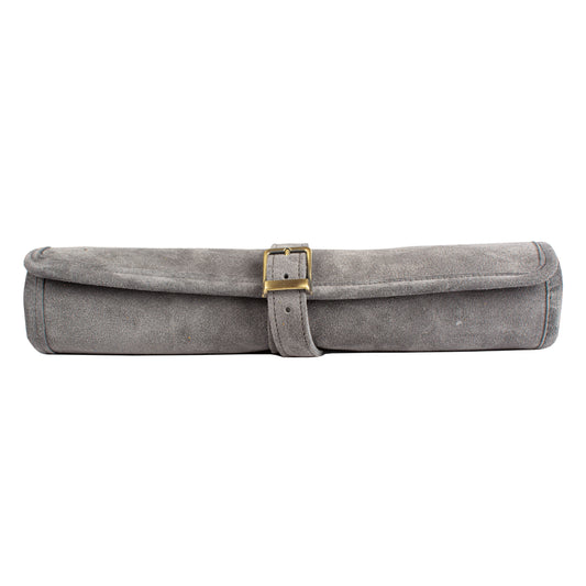 Premium Handcrafted Grey Suede Roll-Up Backgammon Set