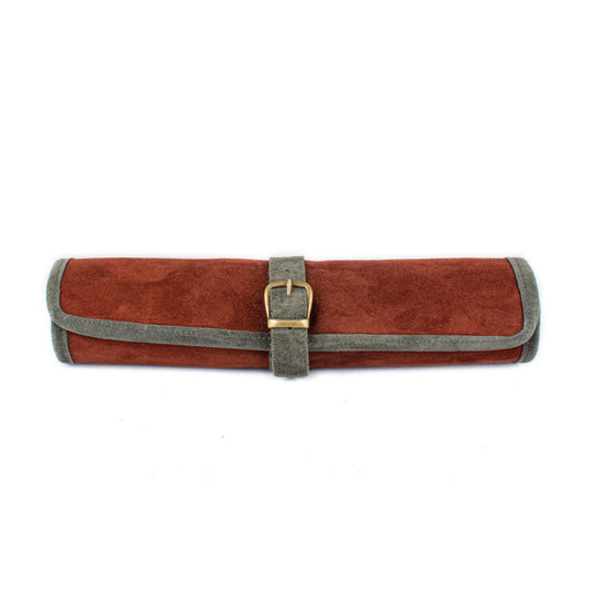 Premium Handcrafted Cinnamon Brown Suede Roll-Up Backgammon Set