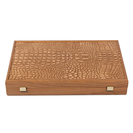 Premium Handcrafted Crocodile Tote in Ivory with Brown Finish Leather Backgammon Set