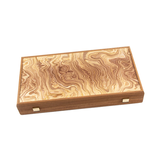 Handcrafted Olive Burl Backgammon Set with Olive Wood Checkers - Mahogany & Wenge Points